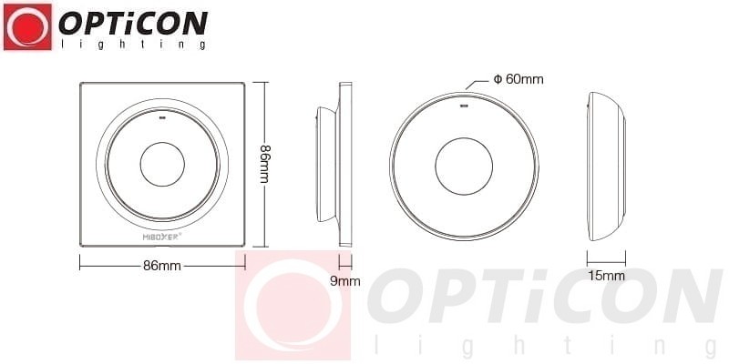 Pilot radiowy dedykowany do sterowania produktami firmy Milight / Miboxer. Może być stosowany do sterowania sterownikami taśm LED oraz przełącznikami elektrycznymi 230V AC.