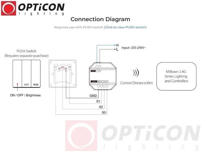 - Transmisja Radiowa 2,4G - Pozwala na przypisanie włącznika do sterowników i lamp Mi-Light z odległości do 30 metrów.