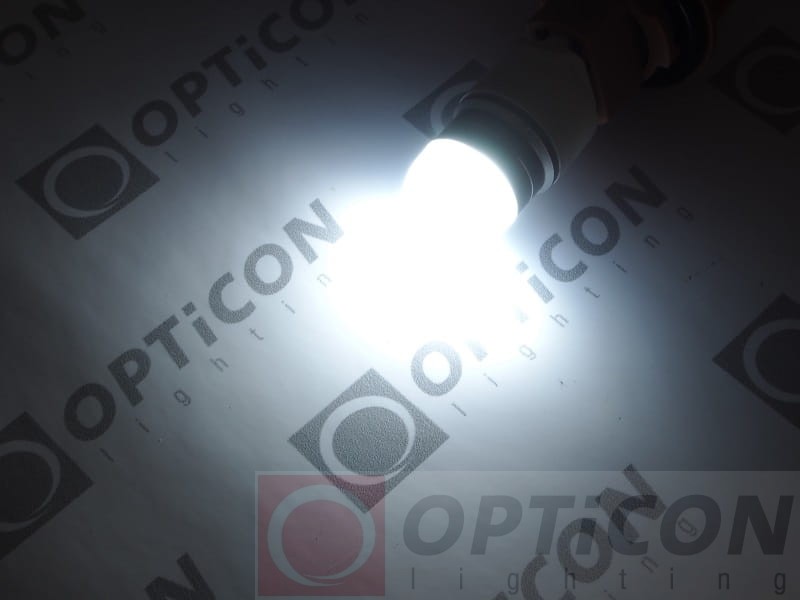 - Układ zasilania w żarówce pozwala na stabilną pracę przy napięciach od 12V do 20V DC. W całym zakresie żarówka świeci tą samą jasnością. Jest odporna na skoki napięcia z instalacji elektrycznej samochodu.