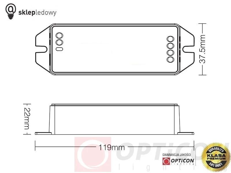 - Sterownik przeznaczony jest do pracy z oświetleniem LED o napięciu 12V oraz 24V DC.