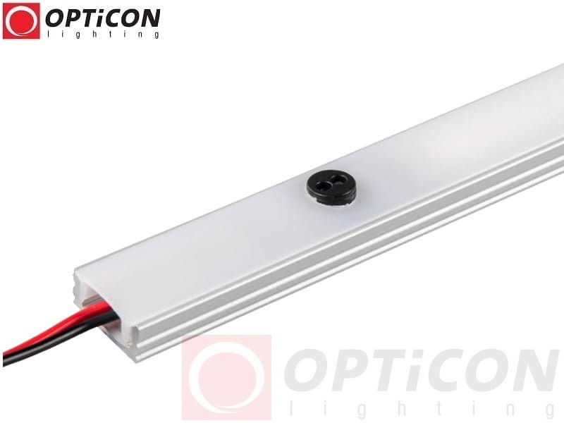 Sposób działania - Oświetlenie włącza się poprzez ruch ręką w odległości do 10 centymetrów od włącznika. Pierwszy ruch ręką włącza, natomiast drugi ruch ręką wyłącza oświetlenie. Dłuższe przytrzymanie ręki przed włącznikiem reguluje jasność oświetlenia. Montaż włącznika wymaga wykonania otworu o średnicy 8mm w kloszu zamykającym profil.