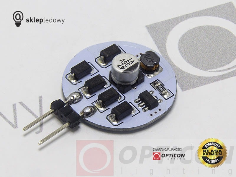 - W żarówce zastosowano standardowe złącze G4. Rozstaw złącza zasilania to 4mm.