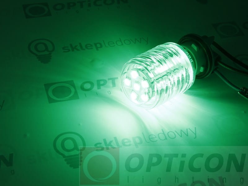 Żarówka LED Ba15s 4W 24xSMD 5050 10-30V DC 360st IP65 Zielony 12V 24V