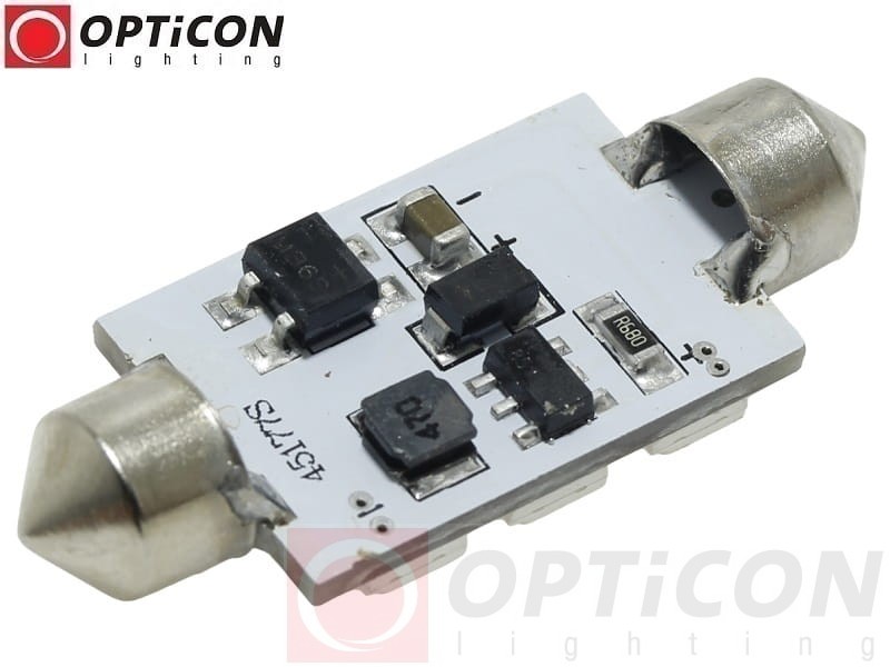 Uniwersalna samochodowa żarówka LED stosowana jako zamiennik dla tradycyjnych żarnikowych żarówek C10W o długości 42mm.
