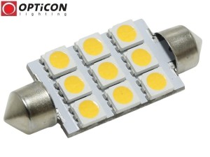 Żarówka Led C10W 42mm 12V 24V DC 9x SMD 5050 Biały Ciepły 3000K OPTICON