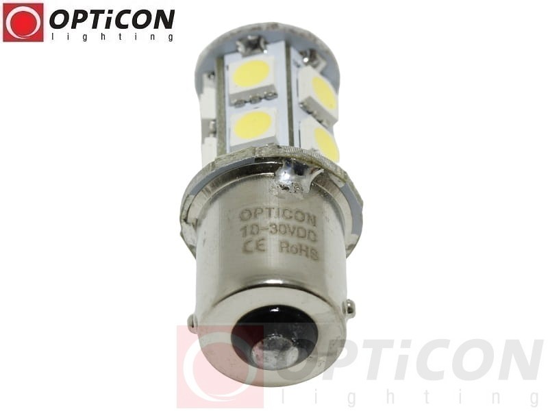 Żarówka Led P21W Ba15s 12V 24V DC 13x SMD5050 Biały Zimny 6000K OPTICON PREMIUM