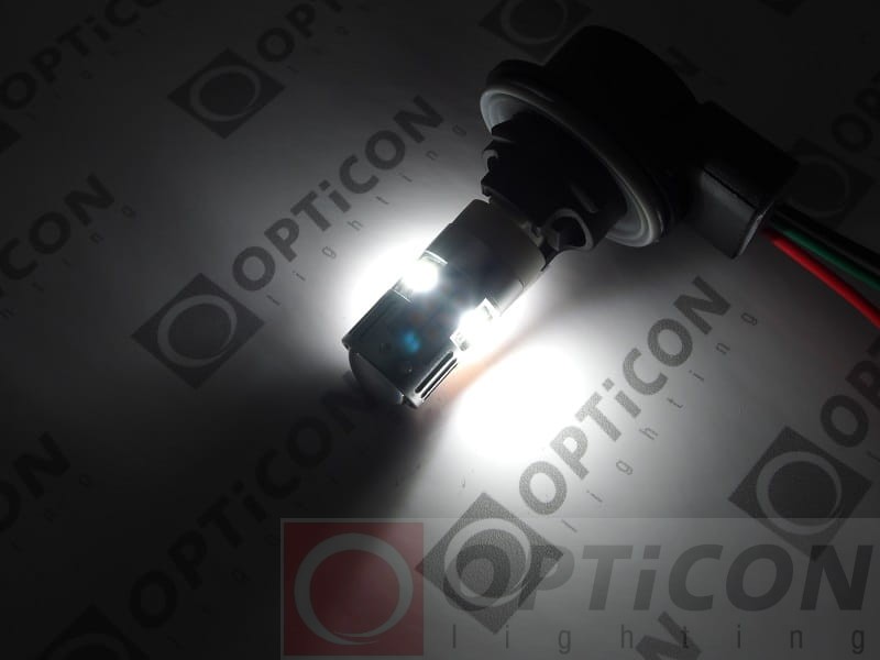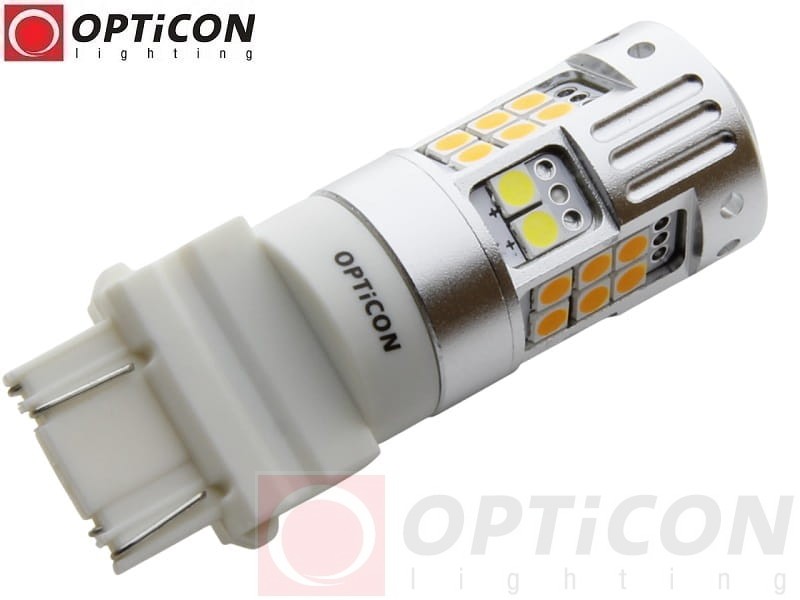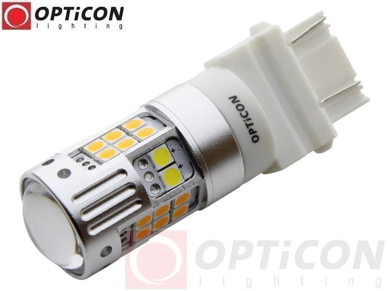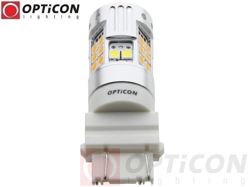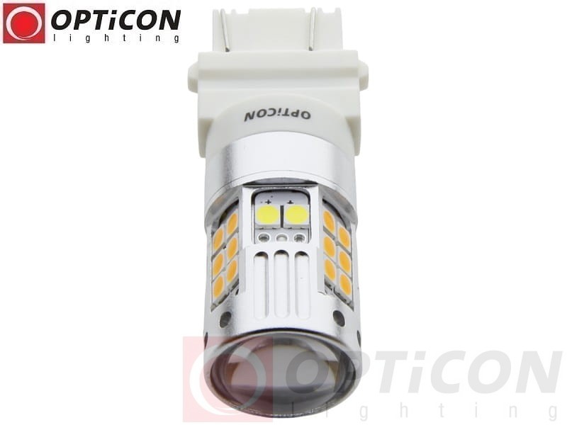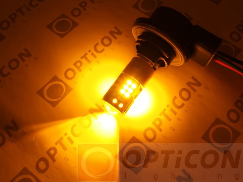 - Żarówka posiada w budowie diody jednokolorowe, 6 białych oraz 24 pomarańczowe. Gdy włącza się kolor pomarańczowy, białe światło gaśnie na stałe do czasu wyłączenia kierunkowskazu. Miga tylko kolor pomarańczowy. Dwa kolory nie mogą świecić jednocześnie.