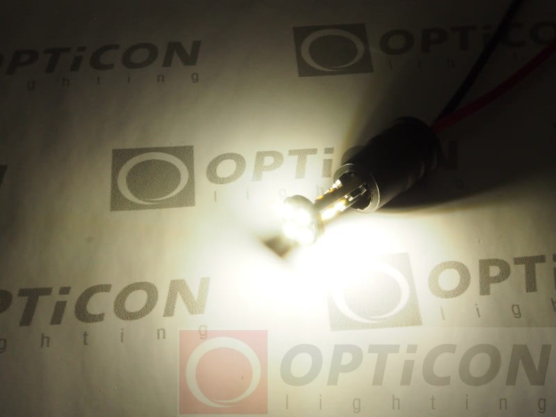 - Żarówka posiada elektroniczny układ zasilający pozwalający na pracę przy napięciach od 12V DC do 18V DC. W całym zakresie pracy napięcia żarówka emituję tą samą ilość światła. Żarówka jest odporna na skoki napięcia z instalacji elektrycznej samochodu.
