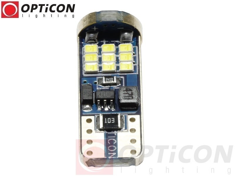 Żarówka Led W5W T10 12V DC 27x SMD 2016 Biały Zimny 6000K OPTICON PREMIUM