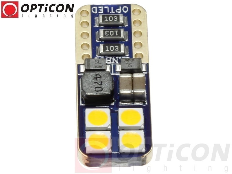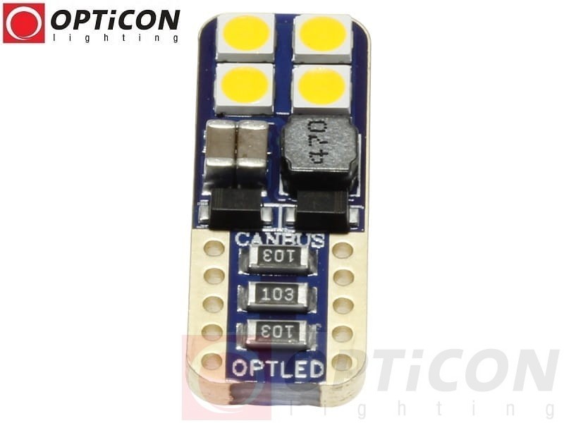 Żarówka Led W5W T10 12V DC 8x SMD 3030 Biały Ciepły 3000K OPTICON PREMIUM