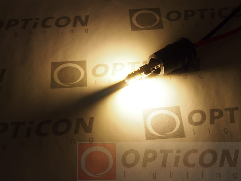 - Żarówka posiada elektroniczny układ zasilający pozwalający na pracę przy napięciach od 12V DC do 18V DC. W całym zakresie pracy napięcia żarówka emituję tą samą ilość światła. Żarówka jest odporna na skoki napięcia z instalacji elektrycznej samochodu.